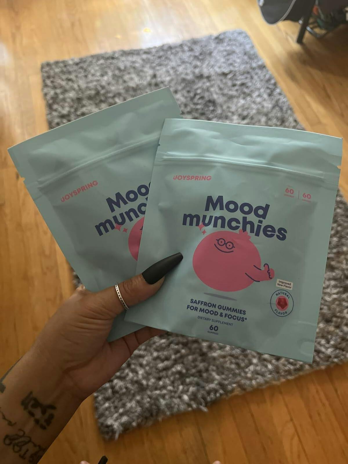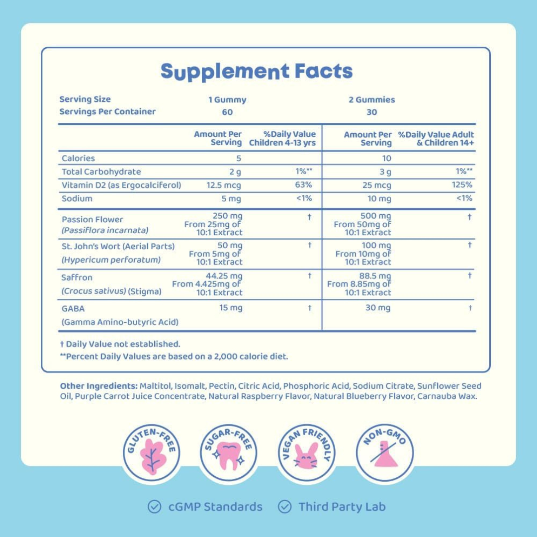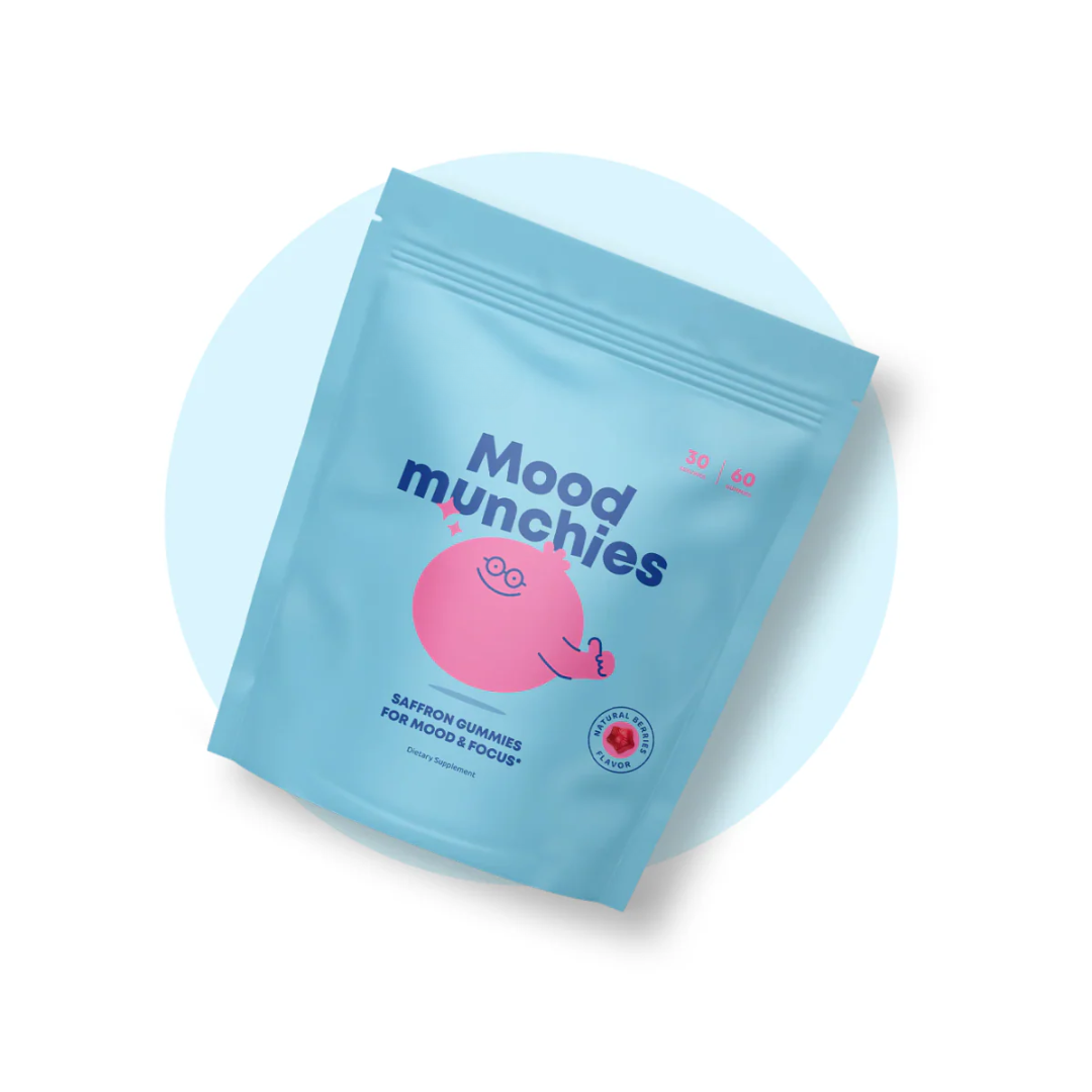 Mood Munchies are natural gummies made with saffron, GABA, St. John's Wort, and Passion Flower to help kids regulate big emotions and improve focus. They're sugar-free, vegan, and taste like natural berries. Think of them as daily support to help your child's racing mind slow down so they can handle feelings better.
